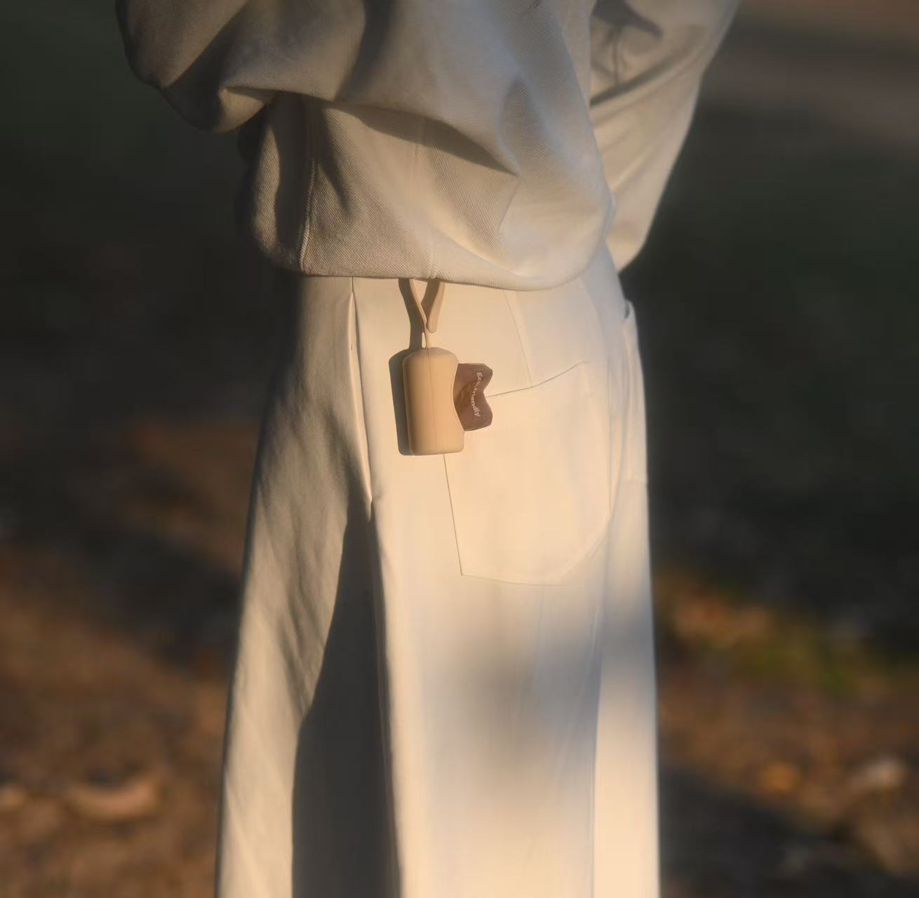 Its compact cylindrical form holds standard waste bag rolls and allows smooth, single-bag dispensing — practical without drawing attention. Designed to feel natural on every walk, it stays out of the way so you can focus on what matters.